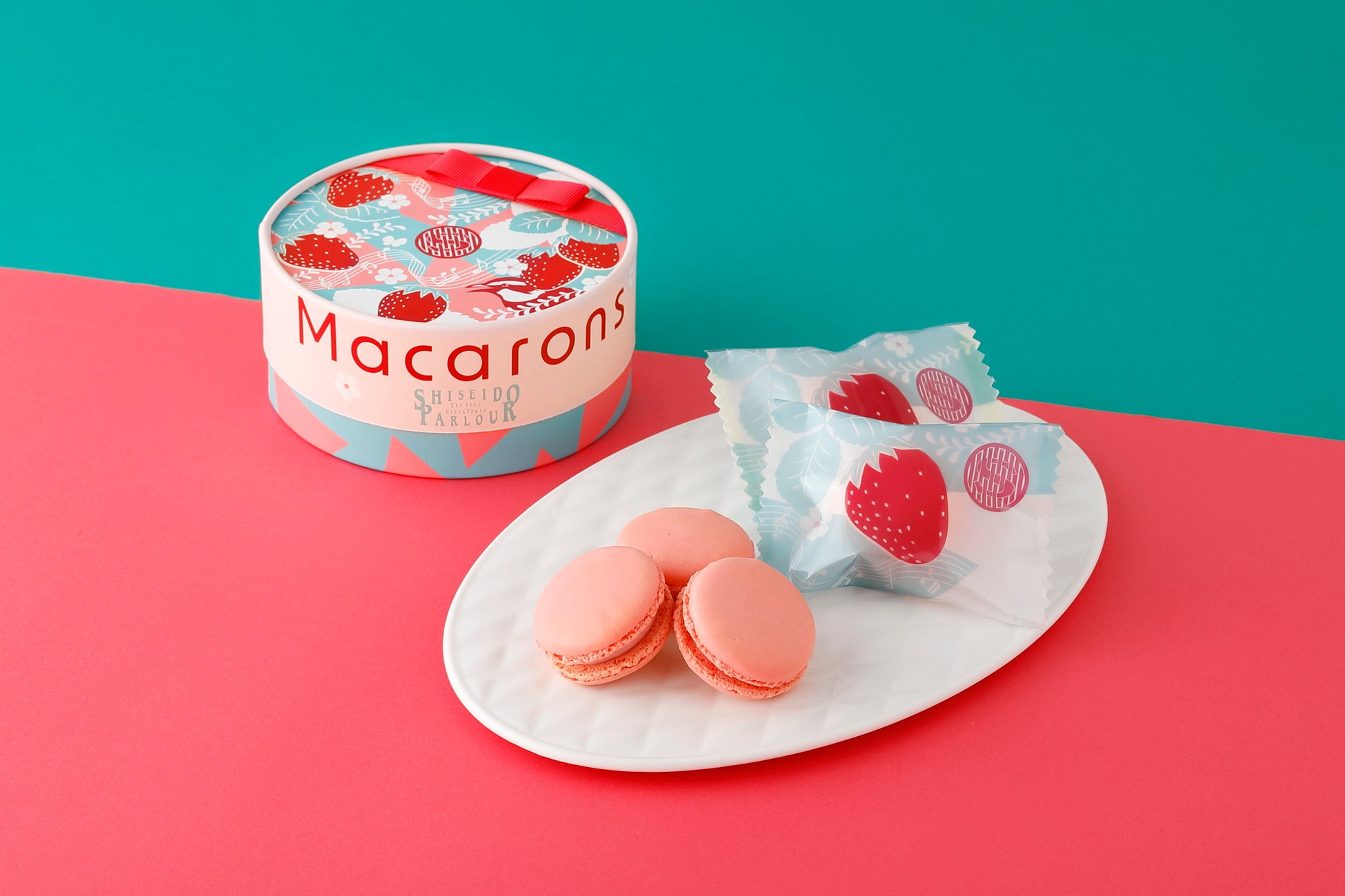 メレンゲに砂糖、アーモンドプードル、福岡県産あまおう苺のピューレを加えた生地を焼き上げ、あまおう苺ピューレとマダガスカル産バニラビーンズ入りのバニラペーストを合わせたクリームをサンドしました。外側はさくっと、中はしっとりした食感が特長です。