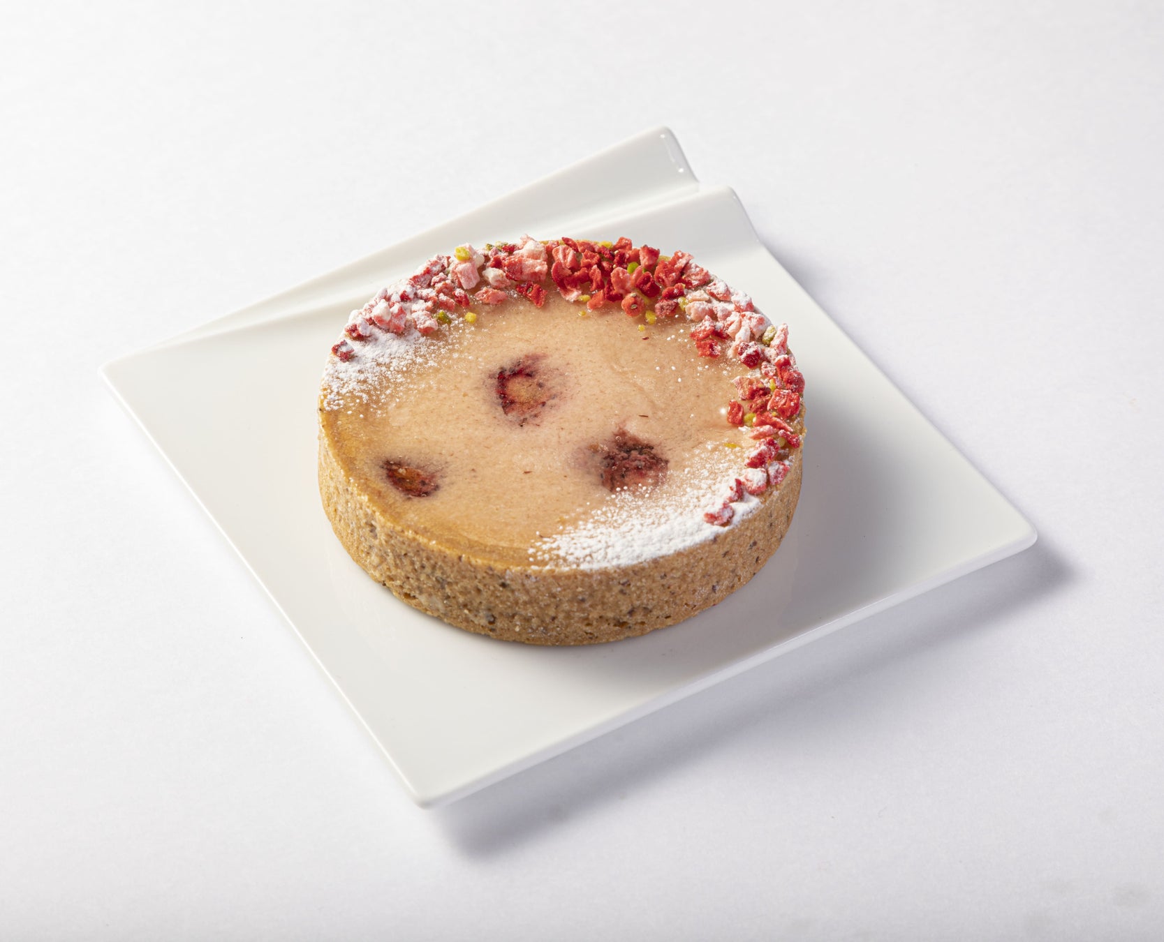 まろやかなチーズにサワークリームを合わせ、ラズベリーを閉じ込めました。ドライストロベリーとピスタチオを飾った見た目も可愛らしいチーズタルトです。