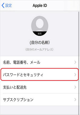 Step2:「パスワードとセキュリティ」をタップします。