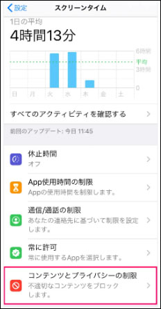 Step2:「コンテンツとプライバシーの制限」を選択します。
