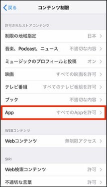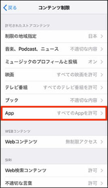Step6:「Appを許可しない」「4歳以上」「9歳以上」「12+」「17歳以上」「すべてのAppを許可」の中から選択して設定してください。