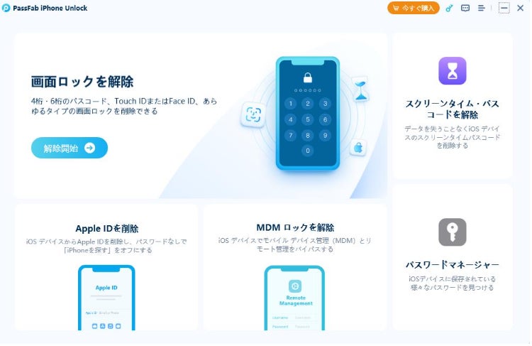 いかがでしたでしょうか。この記事ではiPhone/iPadのスクリーンタイムが表示されない・反映されない場合の方法を紹介いたしました。スクリーンタイムとは、アプリやWebサイトの利用時間を把握し、必要に応じて使用を制限することもできる機能です。スクリーンタイムの問題を解決するためにデバイスを初期化してしまうと、すべてのデータが消去されてしまいます。このような場合は、専用ツールPassFab iPhone Unlockをお使いいただくと、iPhone /iPadのデータを残したままスクリーンタイムを解除することができます。PassFab iPhone Unlockは、画面のガイダンスに沿って、数ステップで簡単、高速にスクリーンタイム・パスコードを解除することができる強力なツールです。その他、iPhone/ iPadのパスコードの解除など、多彩な機能が搭載されている強力なツールです。iPhoneやiPadでお困りの場合は、ぜひお試しください。