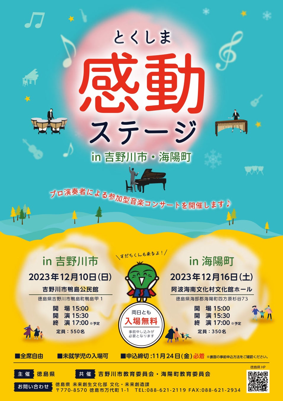 ※ファクシミリ、郵便はがきでお申し込みの場合は、件名に「とくしま感動ステージ申込み」と記入し、