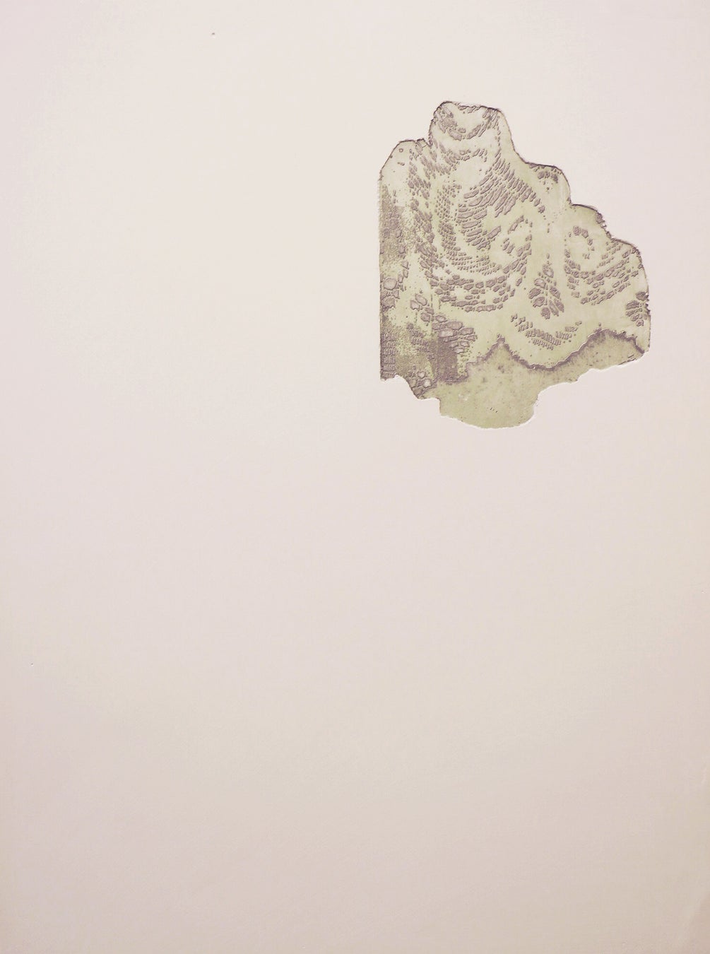 同タイトルをテーマとした銅版画への版画「石膏刷りの技法」を使った全10点の作品を展示します。「石膏刷り技法」は石膏にインクを写し取ることで刷りを行う、凹版の技法です。
