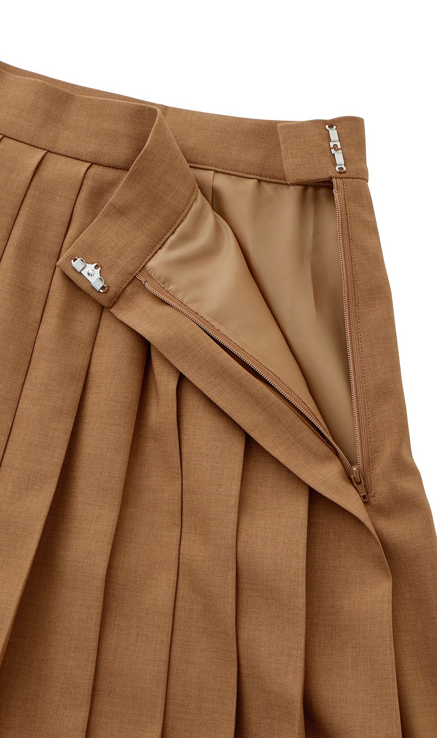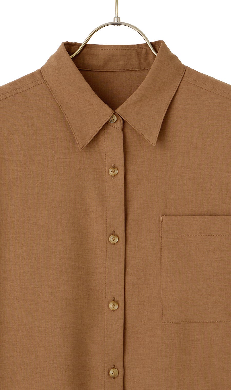本企画は、同色同素材でシャツブラウス、パンツ、プリーツスカートの3型を用意。キャメル色で秋らしい温かみのある雰囲気を演出しながら、涼しく快適に過ごせる生地にこだわり、かいた汗をすぐに乾かす吸水速乾性やウォッシャブル、UVカットなどを備えた夏素材を使用しています。ブラウスには、光沢感のある同色ボタンを採用しているほか、スカートは太めのプリーツで落ち着いた印象にすることで、夏服のような軽快さを抑えました。セットアップとしても単品使いで羽織シャツとしても、秋を感じさせるコーディネートを楽しみながら着まわせるこれからの時期に活躍するアイテムとなっています。