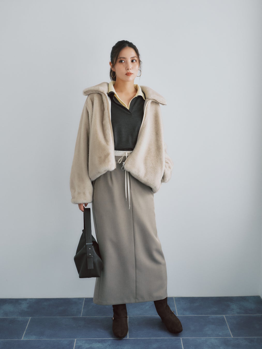 Blouson_¥26,400 Knit_¥14,300 Skirt_¥18,700