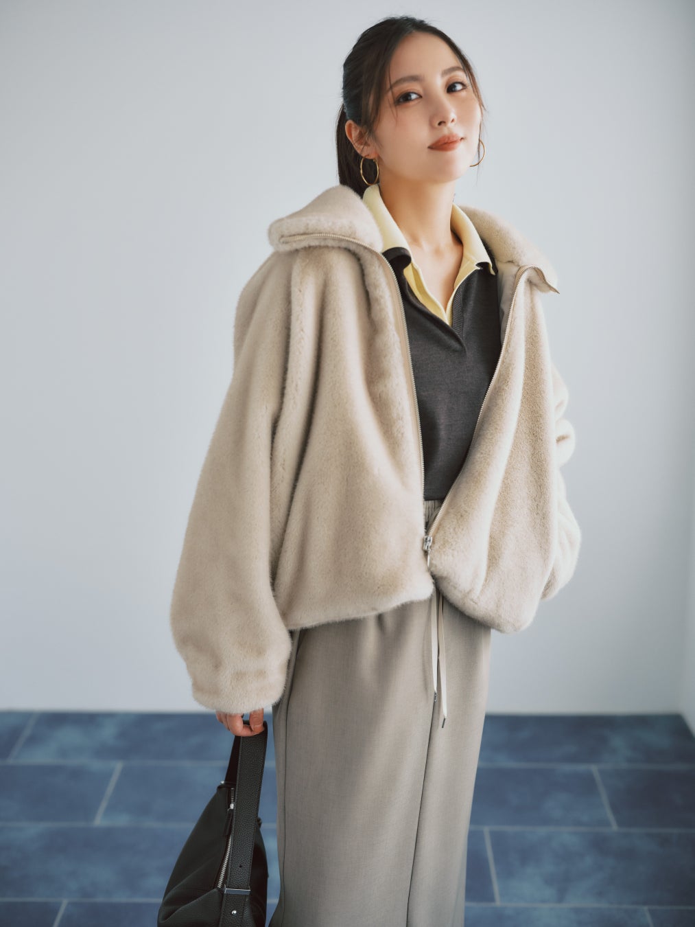 衿つきのプルオーバーは、手に入れておくと便利なトレンドアイテム。重ねることでさらに今っぽさが上乗せされる名品。スポーティなムードには、ファーで女らしさを纏って都会的に着こなして。