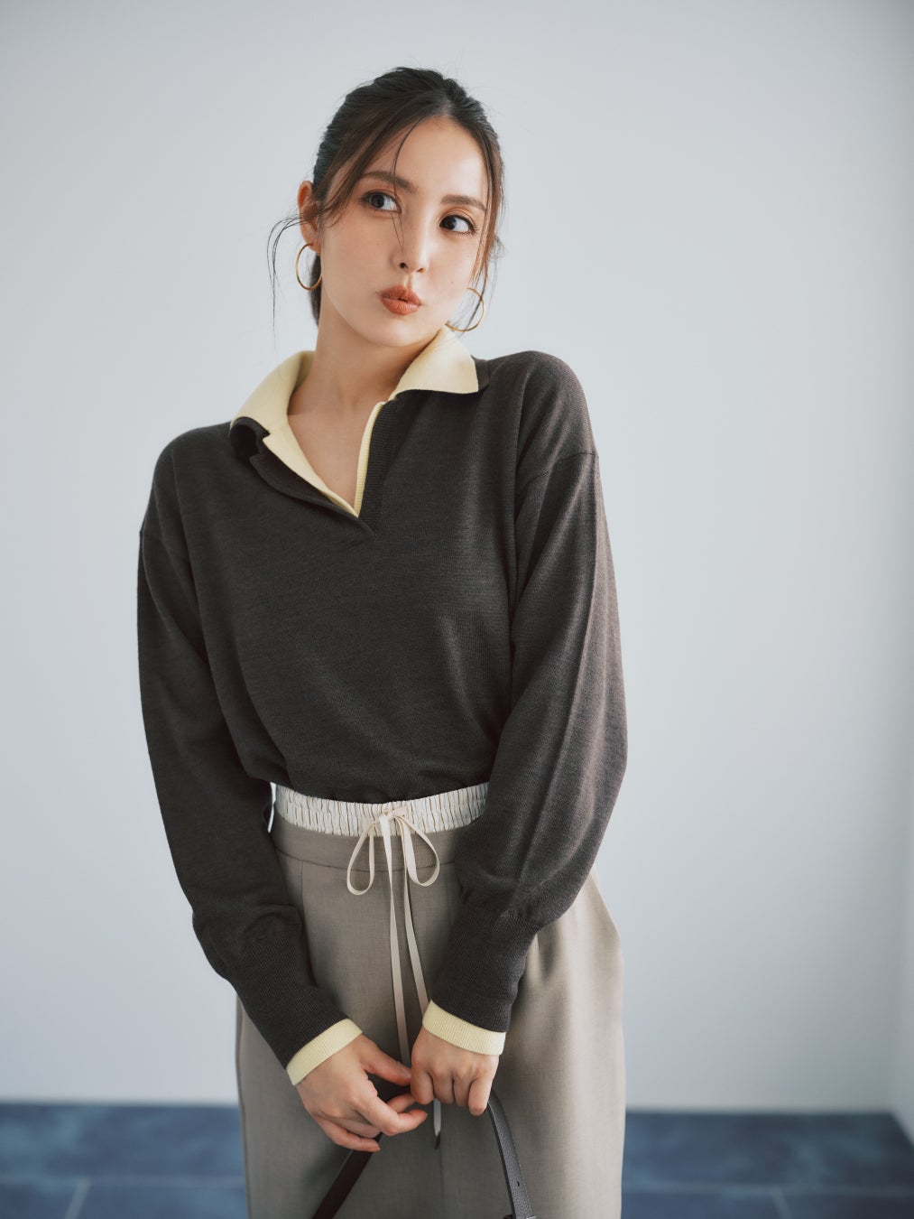 短丈のプルオーバーとスカートのバランスや、厚すぎず薄すぎない絶妙な生地感、衿ぐりとウエストの