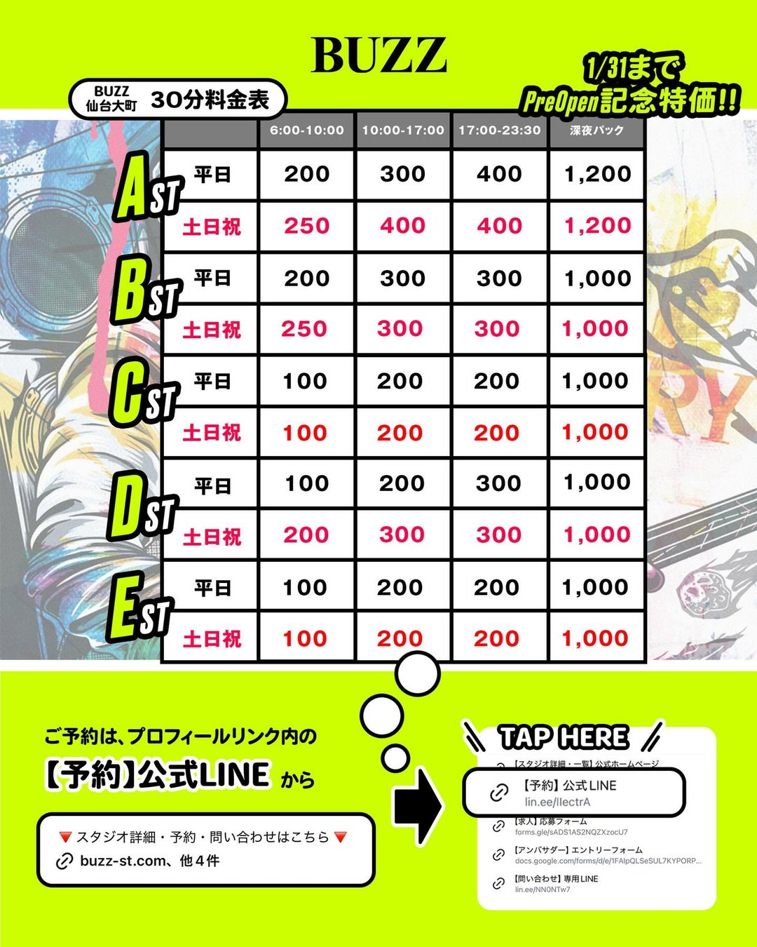 BUZZ仙台大町のオープンを記念して、2026年1月17日(土)〜1月31日(土)の期間中、オープン記念割引を実施します!