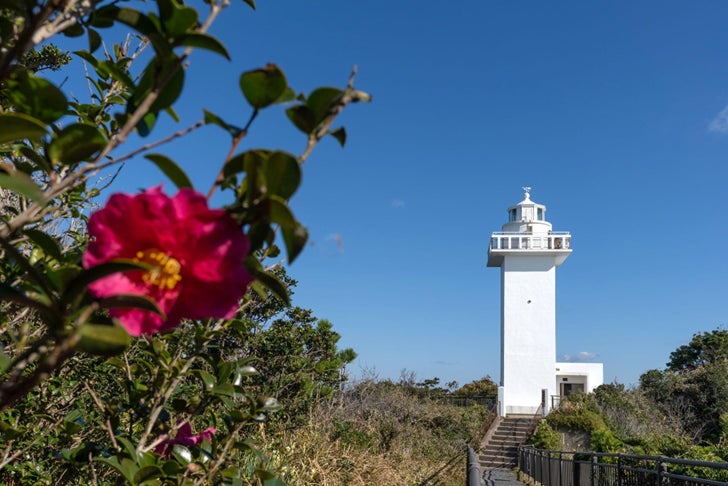 そこに位置するこの全国的にも珍しい四角い灯台は、「日本の灯台の父」として知られるイギリス人R.H.ブラントンの指導により明治6年4月1日、全国で20番目に完成された歴史ある灯台です。頂上からは太平洋と的矢湾を一望でき、天気がいいと御前﨑や富士山も見ることができます。映画「喜びも悲しみも幾歳月」の舞台となったことでも有名です。