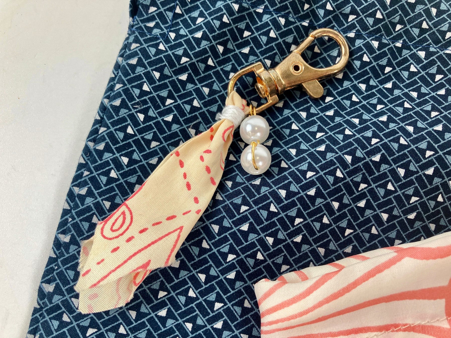 完成した巾着には、再利用パールをチャームとして付けていただきます。