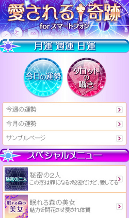 知りたい時にすぐにチェックできるタロット占い、多彩な占術など、ボリューム満点のラインナップ。