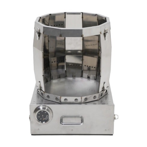焚火台の部品がすべてオーブンに収納できるので持ち運びや保管がしやすく、また、素材をステンレスにすることで錆びづらく、手入れが簡単になるようにしています。 (※強風の際は風よけ等設置をお願いします。オーブン温度が上がりきらない場合があります。)
