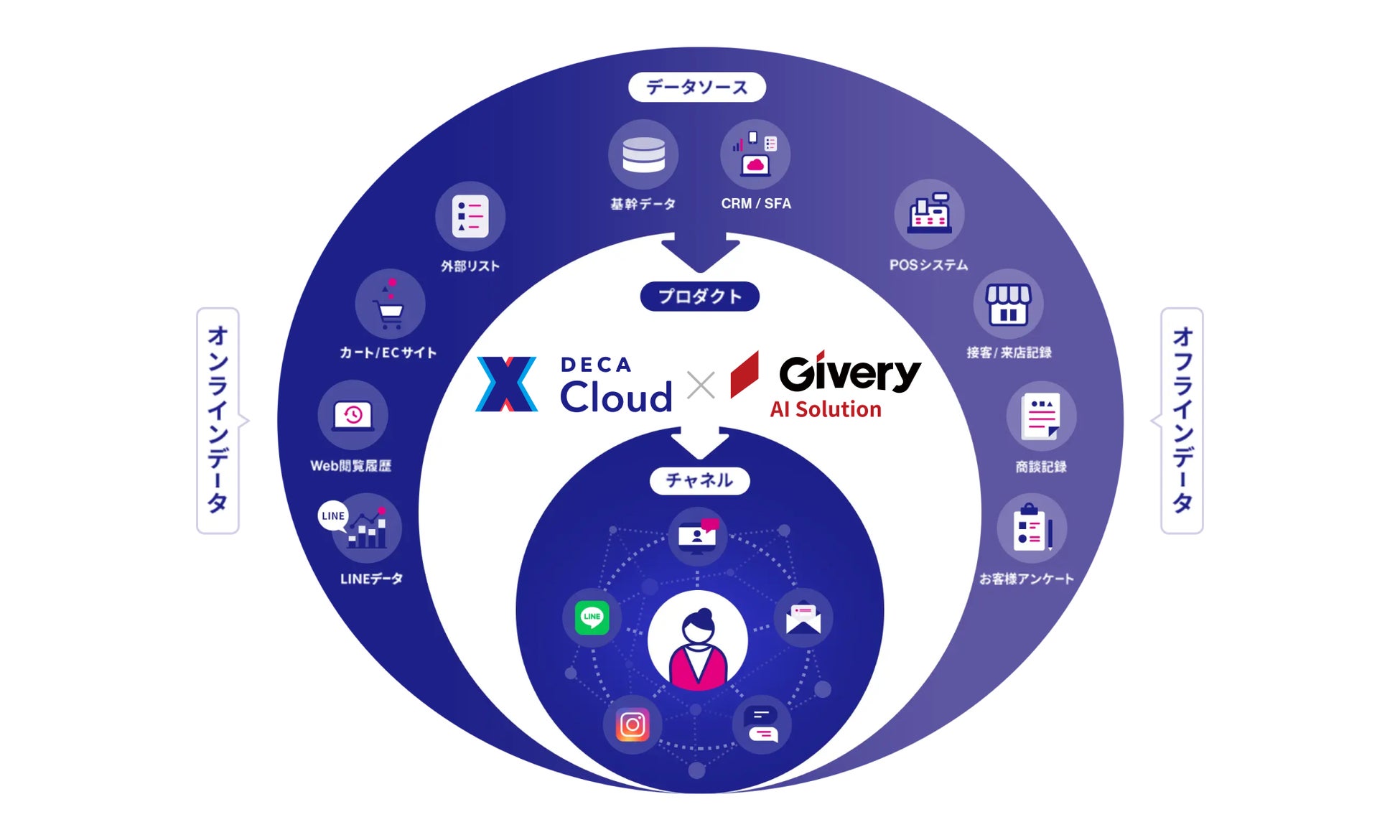 DECAは、「テクノロジー」と「人」の力で、あらゆる組織のデータ利活用を推進させ、飛躍的な事業成長を支援するマーケティングDX支援サービスです。