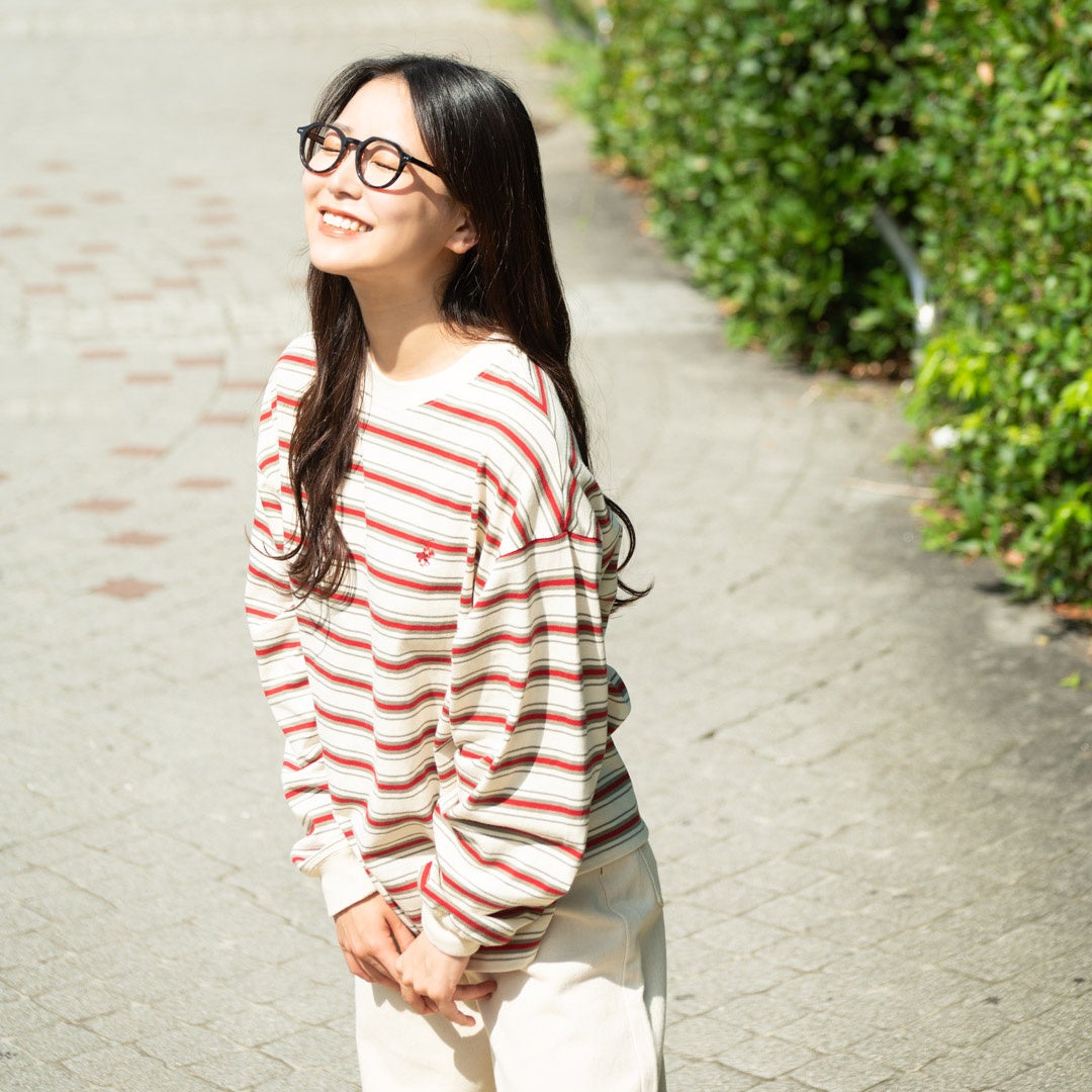 レトロなダイア柄が特徴でゆったりシルエットで窮屈感なく着用できます。肌ざわりも良く毎日でも着用したくなるアイテムです。