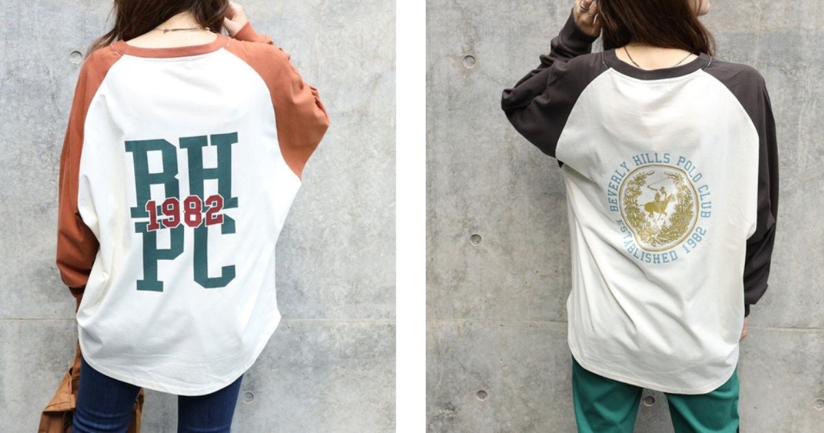 ラグラン×アメカジプリントで、トレンドの古着感を出しました。