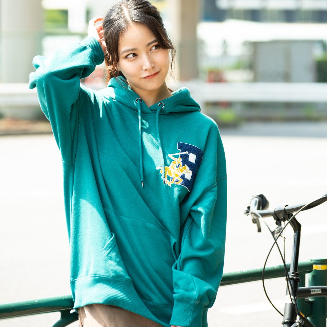 発色の良いカラーでビンテージ感のある色味にしているので着用しやすいアイテム。ワッペン刺繍でインパクトをプラス。
