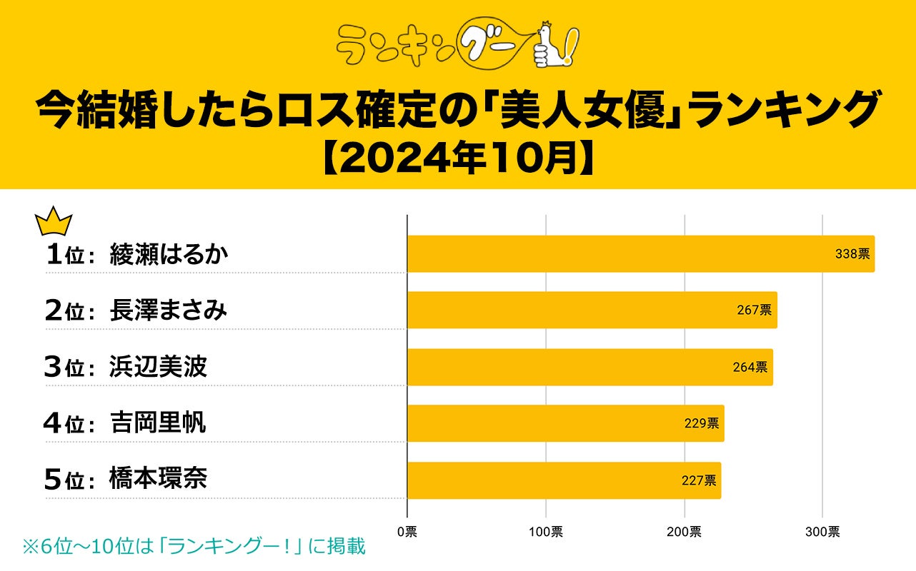 ◆今結婚したらロス確定の「美人女優」ランキング【2024年10月】概要