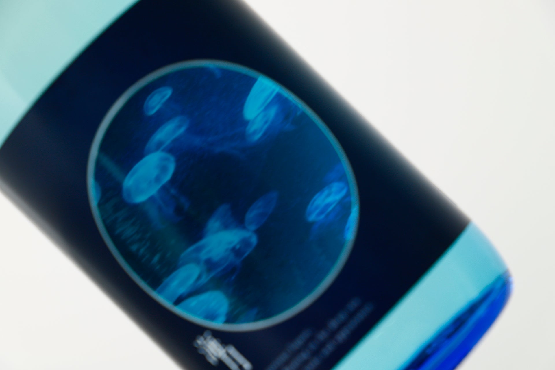 ② ラベルの丸い窓から、クラゲたちが海の中を舞う姿を見ることができます。