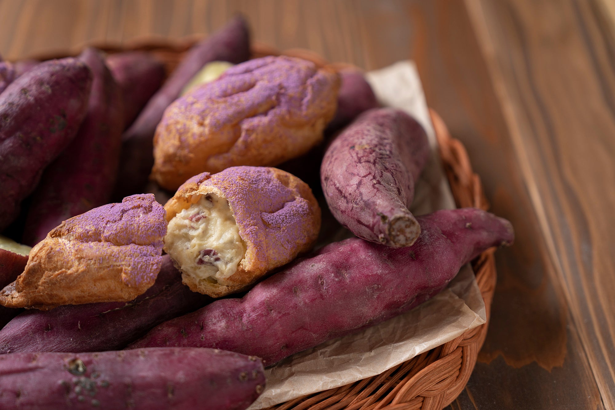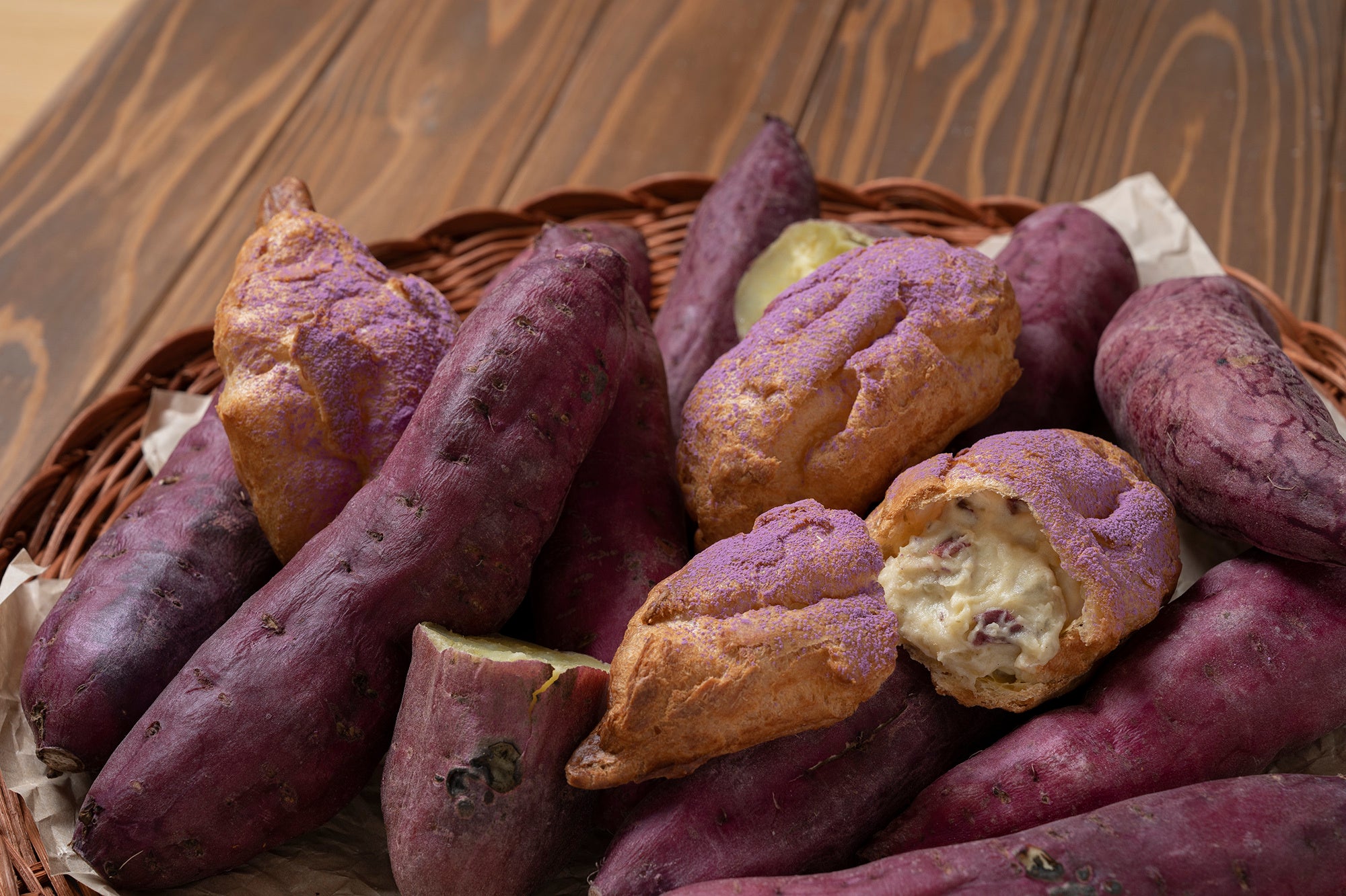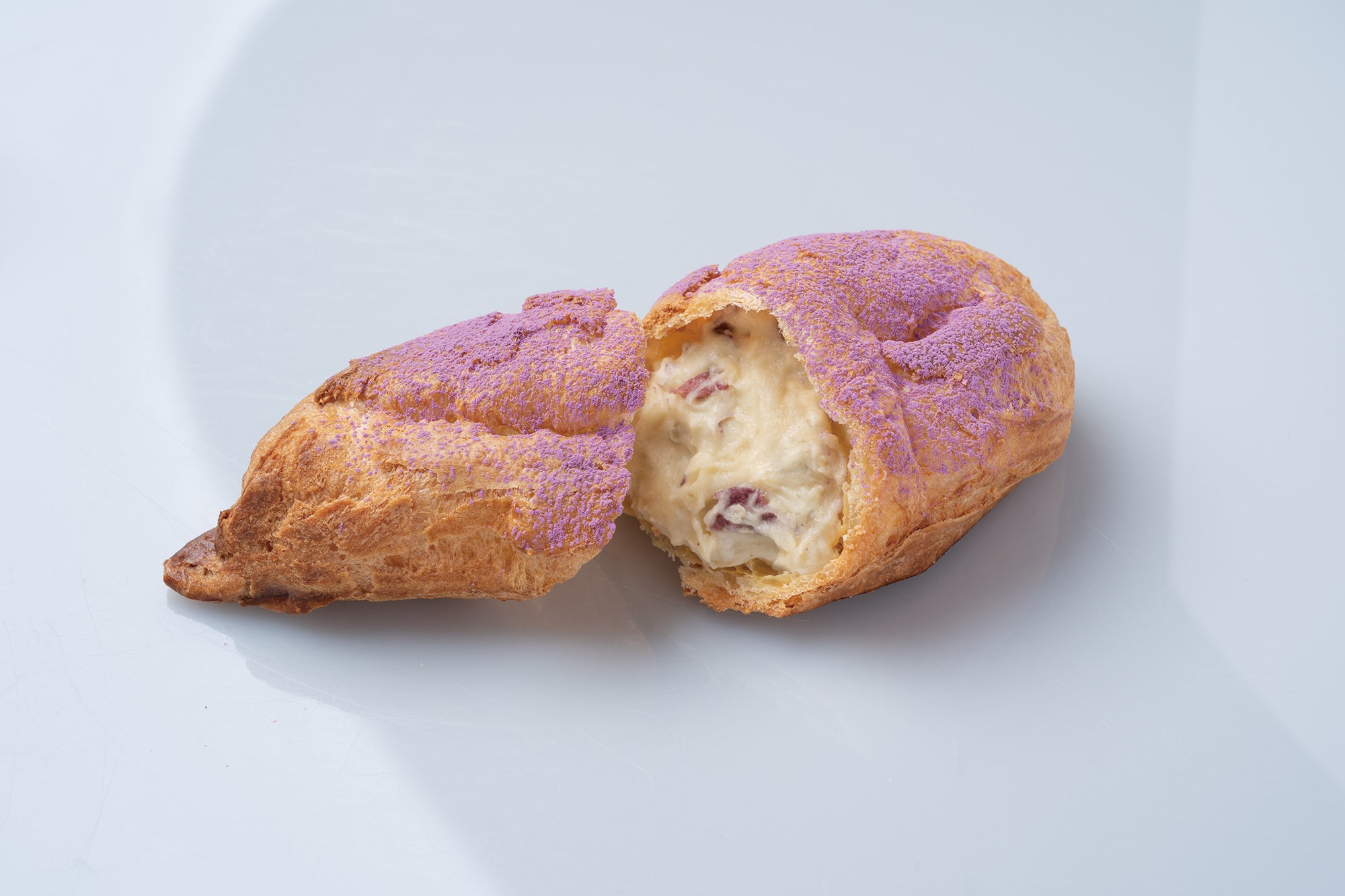 ※表面の紫芋パウダーにアントシアニンが含まれるため商品の一部に変色が起こる場合がございますが、風味や品質には影響ございません。