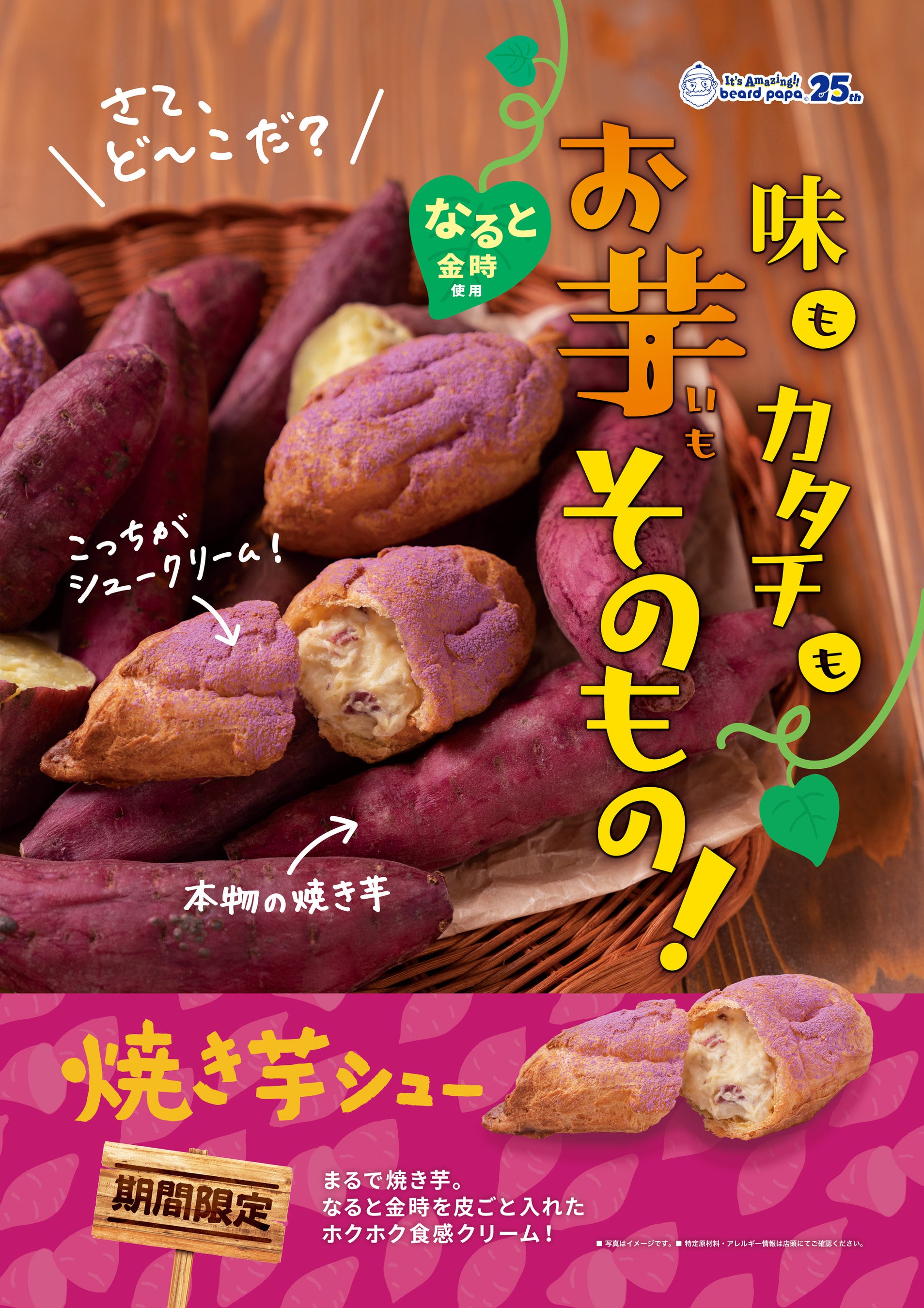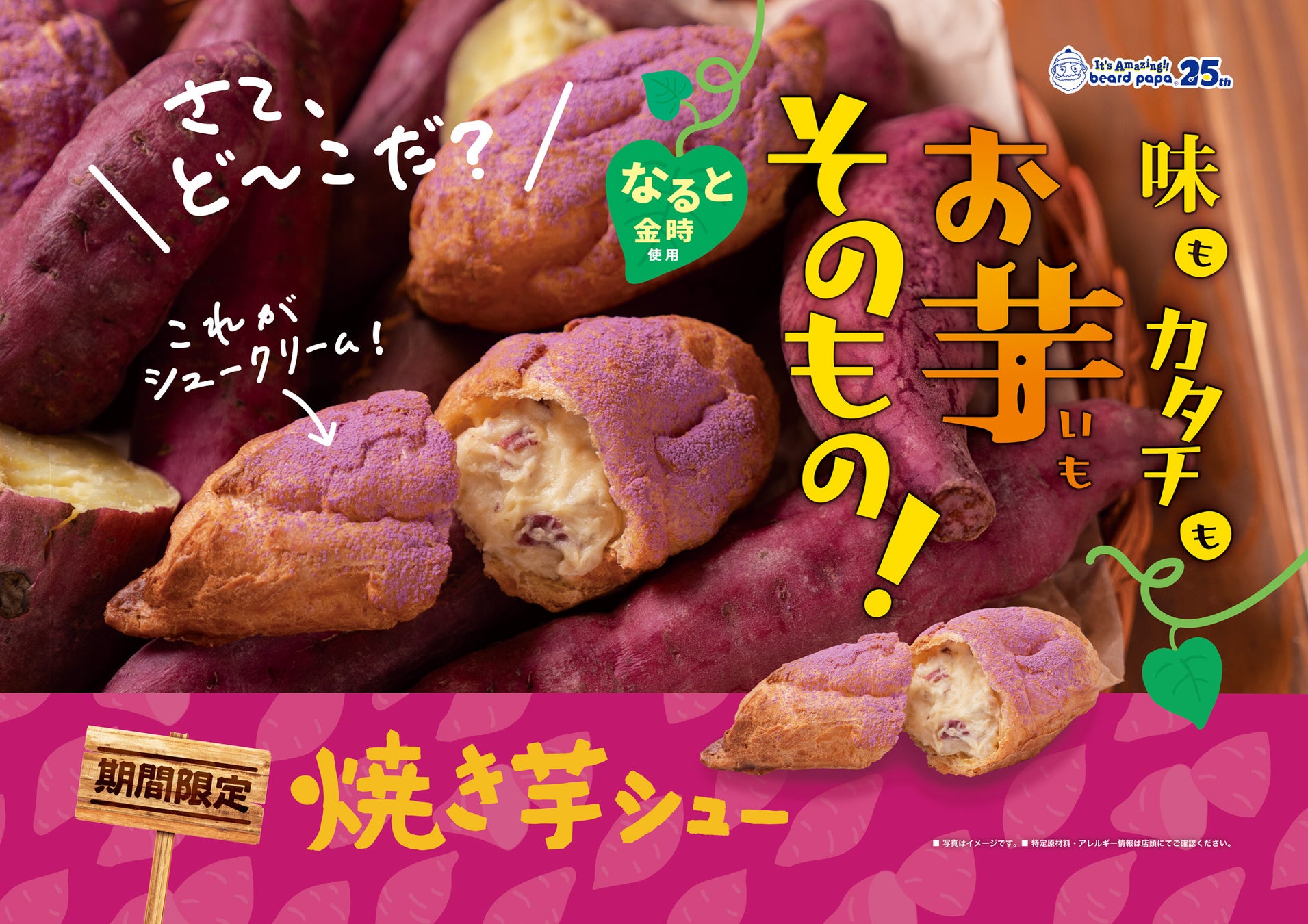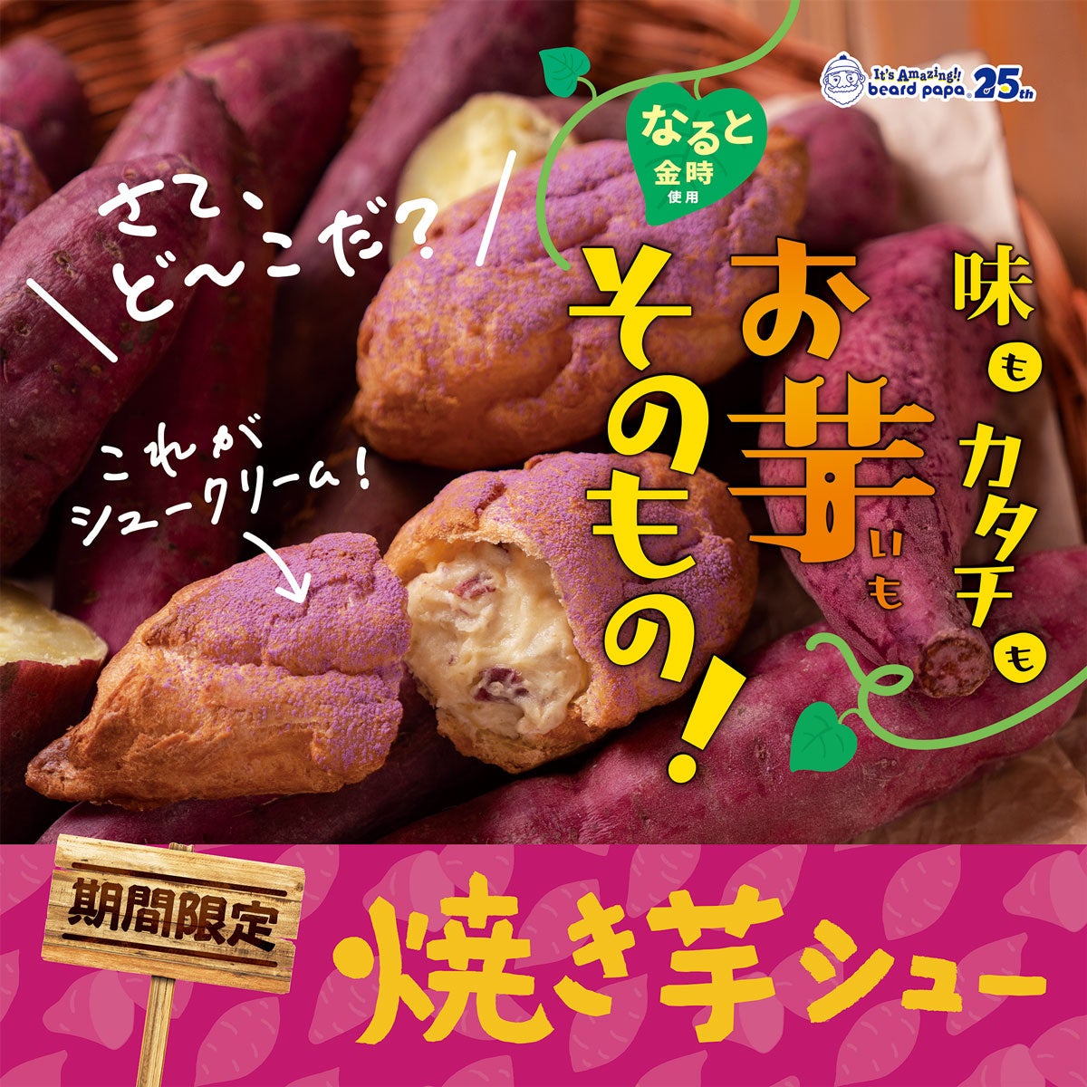 【ビアードパパ25th】シュークリームなのに「味もカタチもお芋そのもの!」“驚き”の見た目と味わいを楽しむ、ビアードパパの秋の味覚“焼き芋シュー”9月1日復活!