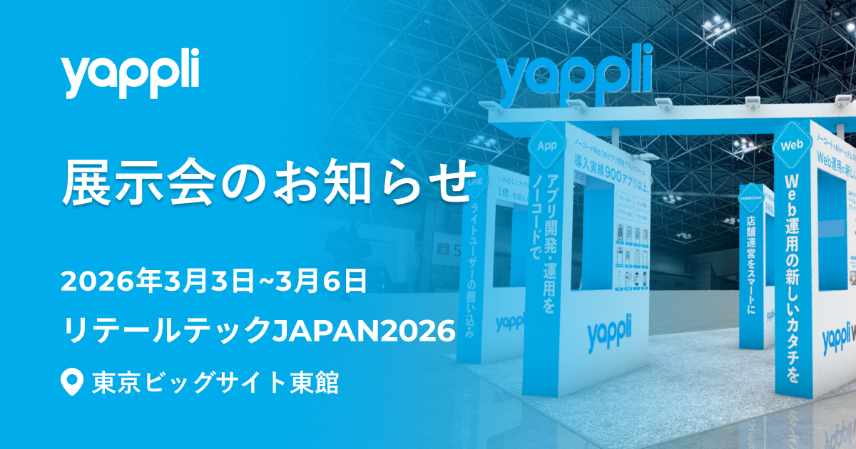 株式会社ヤプリ(本社:東京都港区、代表取締役:庵原保文、以下「ヤプリ」)は、2026年3月3日(火)〜3月6日(金)に東京ビッグサイトで開催される「リテールテックJAPAN 2026」に出展いたします。