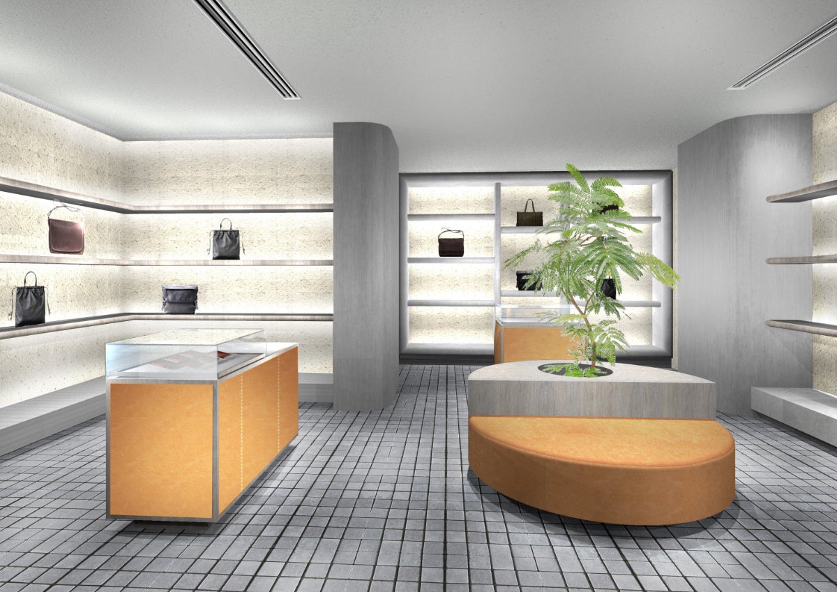 さらに店内の什器には土屋鞄製品にも採用されている国産牛革のヌメ革を取り入れ、店舗の歩みと共に革の経年変化を楽しめる空間となっています。
