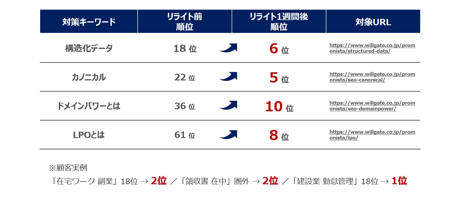 ◯当社メディアでもリライトでの順位上昇実績多数あり