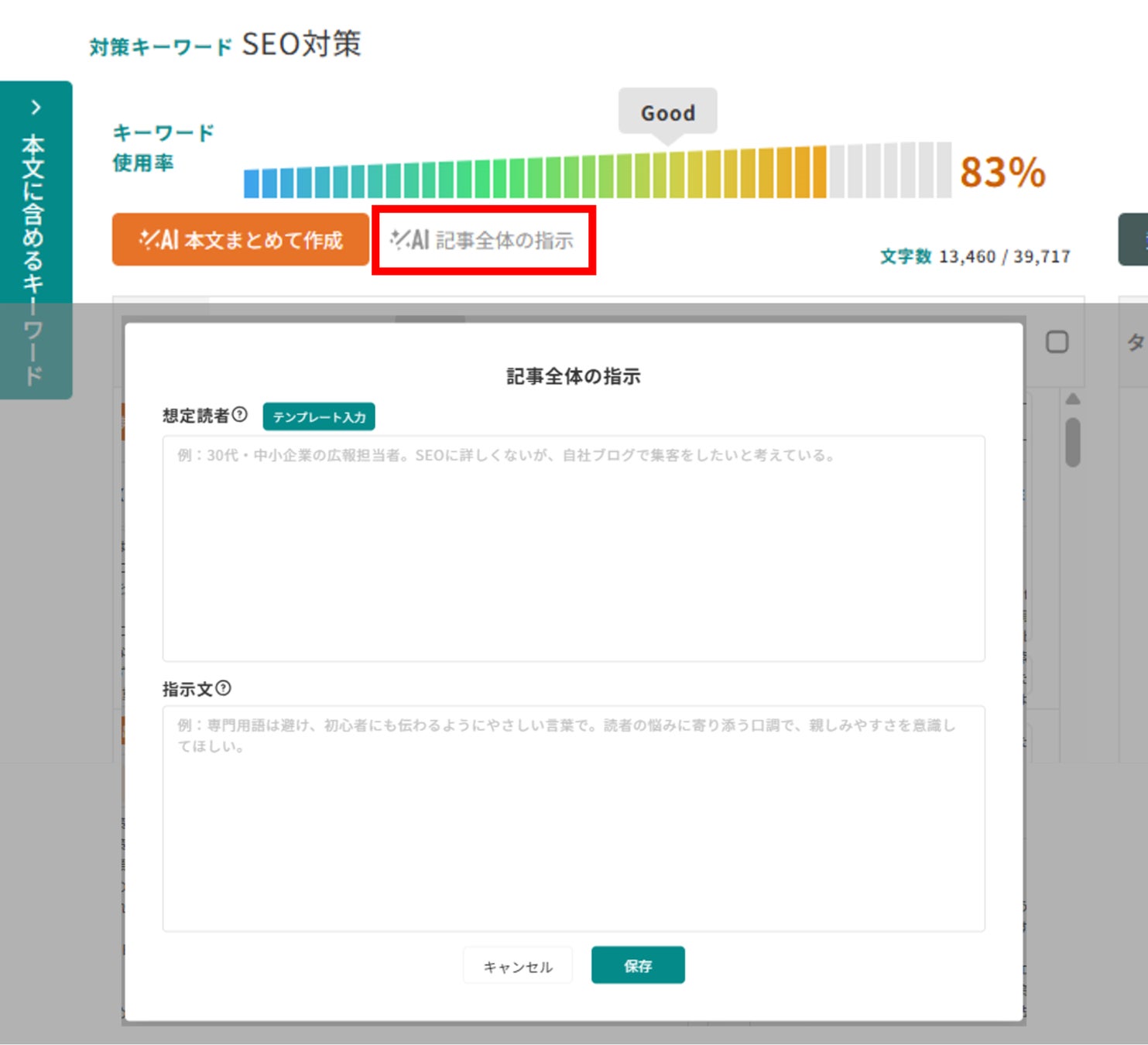 ◯AIへの文章全体指示・想定読者(ペルソナ)の設定ができるように