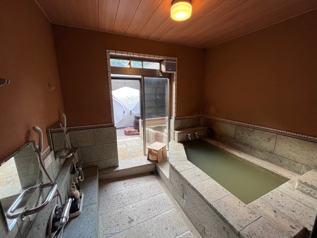 本館は、各室に専用の源泉かけ流し風呂を設置。お部屋でお好きな時にお好きなだけ24時間入浴いただけます。また、テントサウナ付きの部屋もご用意しています。