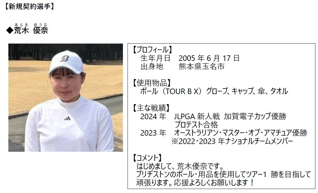 ブリヂストンスポーツ株式会社の契約選手が2025年の国内女子ツアーに参戦します。