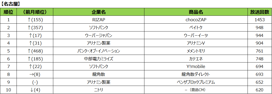 *1 2022年10月度以降、商品別ランキングで放送回数7000回を上回ったCMは、2023年1月度1位のリクルートホールディングス「スーモ」 のみ(7933回)< https://www.so-netmedia.jp/topics/pr_release_20230213_zb/ >