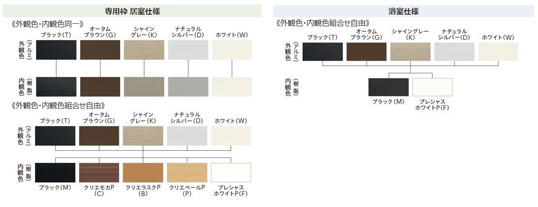 居室仕様は、「外観色・内観色同一」・「外観色・内観色組合せ自由」を設定。浴室仕様は、「外観色・内観色組合せ自由」を設定。
