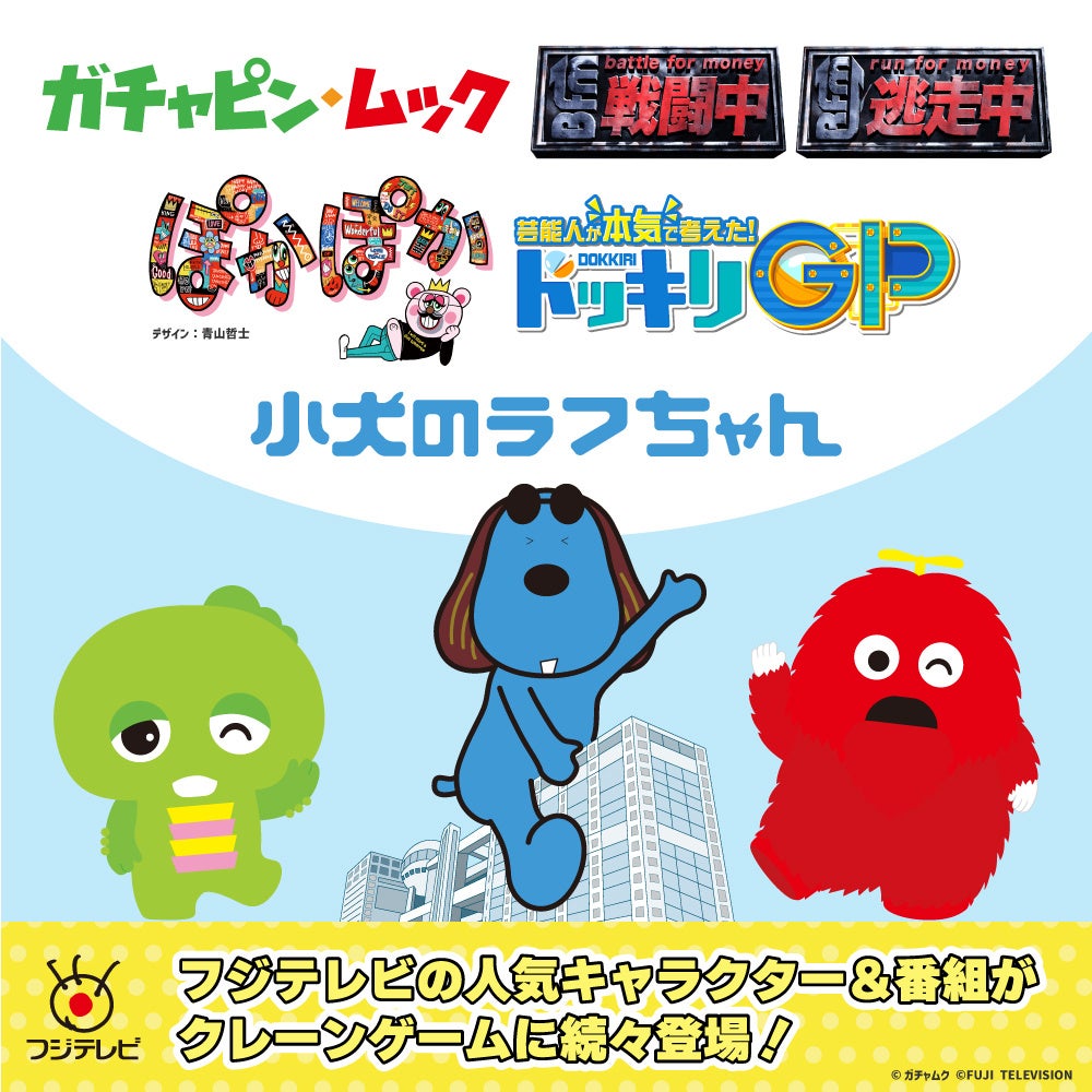 「ガチャピン・ムック」や「小犬のラフちゃん」などフジテレビの代表的なキャラクターをはじめ、『戦闘中』・『逃走中』・『芸能人が本気で考えた!ドッキリGP(グランプリ)』や『ぽかぽか』などを展開予定。番組やキャラクターの魅力が存分に感じられるラインナップとなっております。