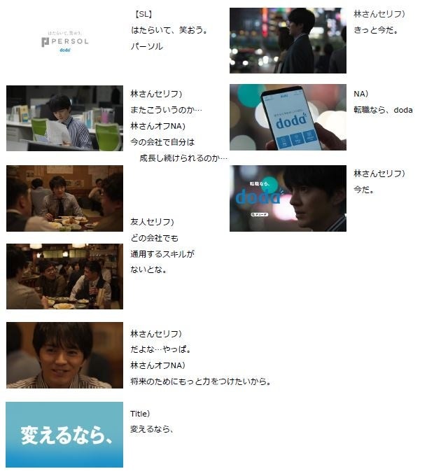 パーソルキャリア株式会社が運営する転職サービス「doda(デューダ)」(編集長:大浦 征也)は、林 遣都さんを起用したTVCM「変えるなら、きっと今だ。」篇を関東・関西・東海・福岡県にて2023年3月1日(水)より放送開始いたします。また、TVCMクリエイティブはdodaサイト内「アドギャラリー」にて公開します。