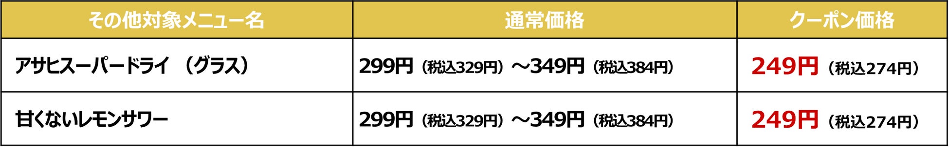 ▼“1杯だけ”にも大活躍!クーポンでアルコールメニューが“いつでもハッピーアワー価格(※)”に