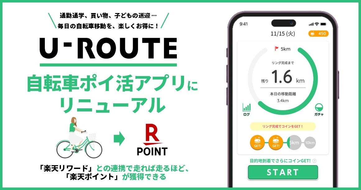 「U-ROUTE」、自転車ポイ活アプリにリニューアル