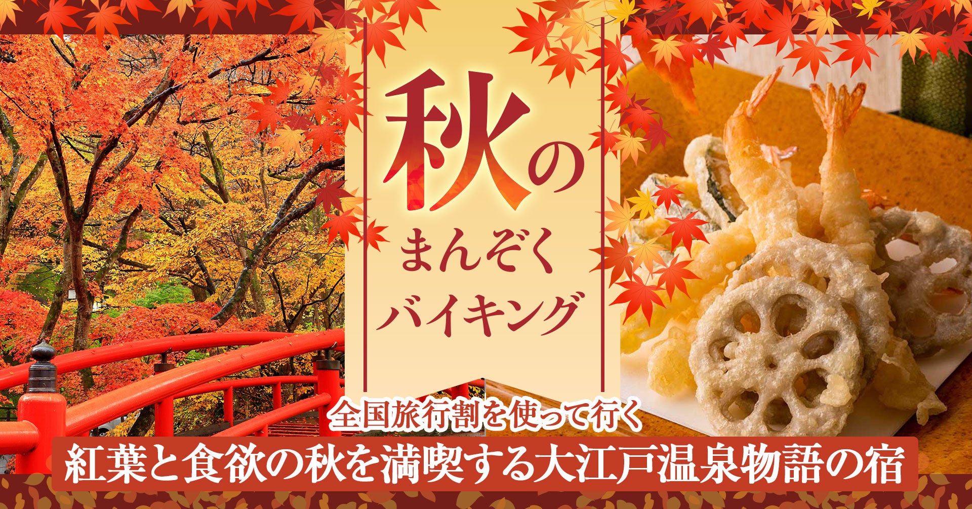 10月11日、全国旅行割スタート!(*)お得な仕組みで行く、紅葉と食欲の秋を満喫する旅へ。大江戸温泉物語 福島県と群馬県の宿。