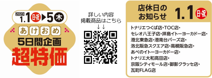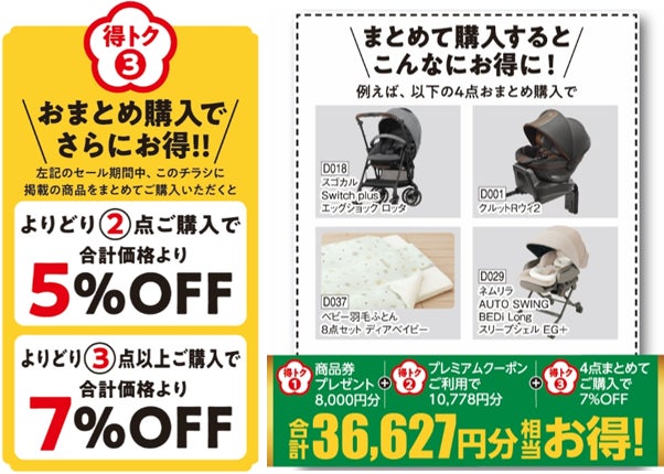 創業90周年を迎えた株式会社赤ちゃん本舗(本社:大阪市中央区 https://www.akachan.jp )は、今年1年の感謝と新年を迎える喜びを特別なセールでお伝えします。『ザ・得トク祭※1』を2022年12月29日(木)から2023年1月26日(木)まで、また新年からの5日間は『初売り※2』を2023年1月1日(日・祝)から1月5日(木)まで全国のアカチャンホンポで開催いたします。