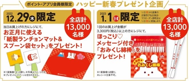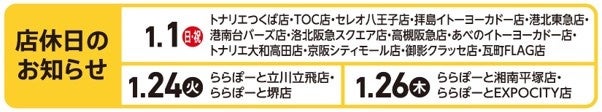 ※仙台泉店、ララガーデン長町店は1月2日(月)から実施いたします。