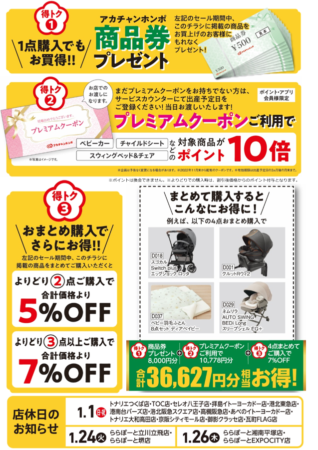 今年一年の感謝を込めて、アカチャンホンポは年末からおトクな企画をご用意いたします。