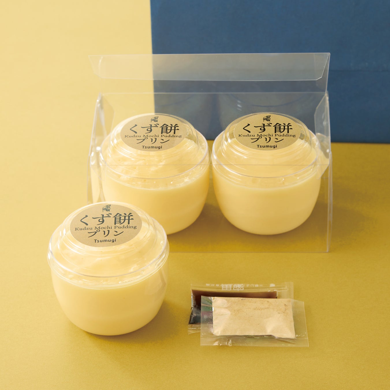本葛粉を使用したもっちり食感の和風プリンです。黒蜜ときな粉をかけてお召し上がりください。手土産にもぴったりなテイクアウト用もご用意いたしました。