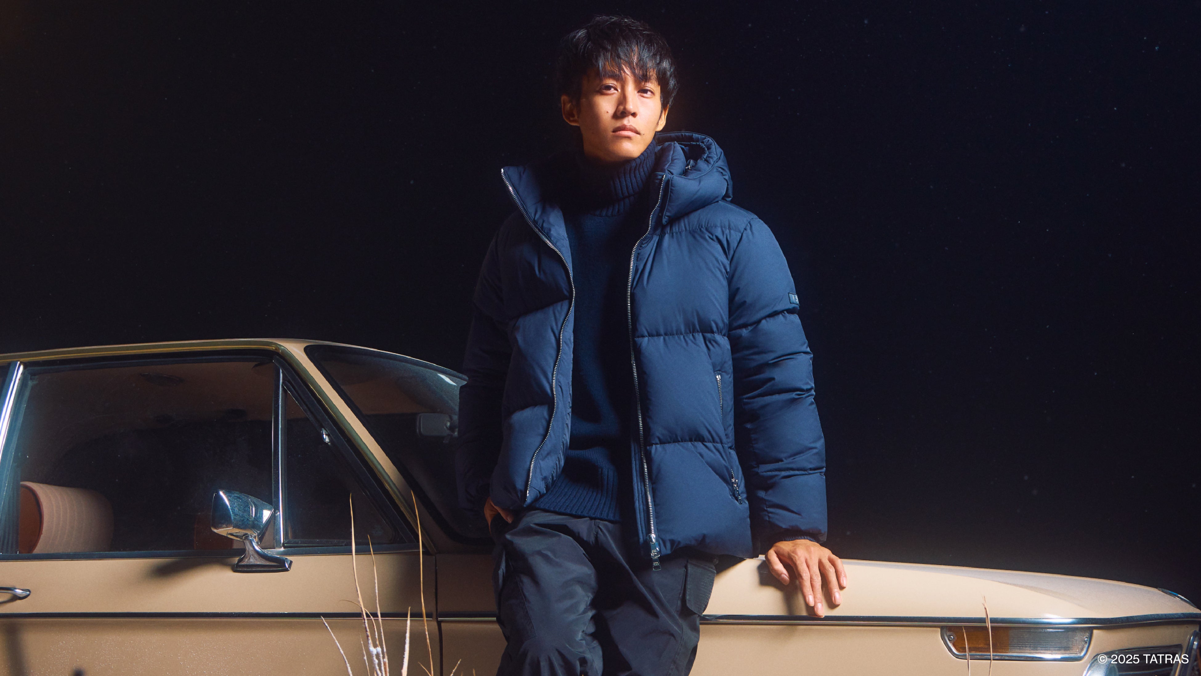 本キャンペーンでは松坂桃李さん着用にて、TATRASの2025AW新作コレクションから、幅広のダウンステッチが特徴的な「GRAMI / グラミ」や、アメリカ軍のN-3B型のディテールを落とし込んだ、ハーフコート丈のダウンジャケット「FONDO / フォンド」をはじめ、上質な素材と洗練されたシルエットのアウターをメインとした全5LOOKをビジュアルとムービーにて公開いたします。