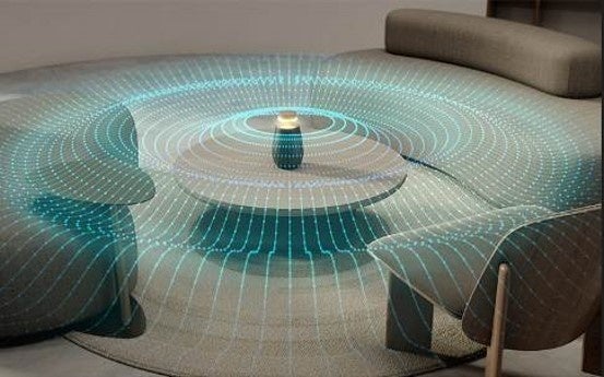 スピーカーユニットを垂直方向に配置することで、音が空間全体を包んで360°に広がり、スピーカーをどこに置いても、どこにいても高音質サウンドをお楽しみいただけます。