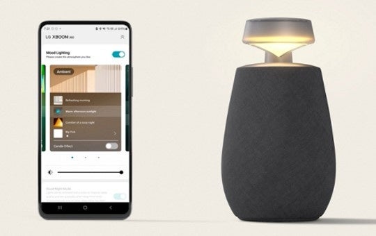 また、空間を演出するライティングモードも実装し、上部に半透明グラス素材を採用したことでムードライトが空間全体に広がります。さらに、“LG XBOOM” アプリを使えば、1,677 万色から自分好みのライティングカラーを設定可能。ライティングだけでなく、プレイリストや音響効果なども、スマートフォンなどのデバイスから手軽に設定変更ができます。