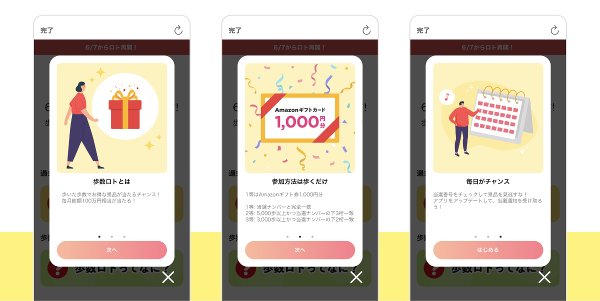 当社は、歩数ロトを通じてより多くのお客様の健康づくりをサポートし、今後も楽しみながらアプリをお使いいただけるサービスを展開してまいります。