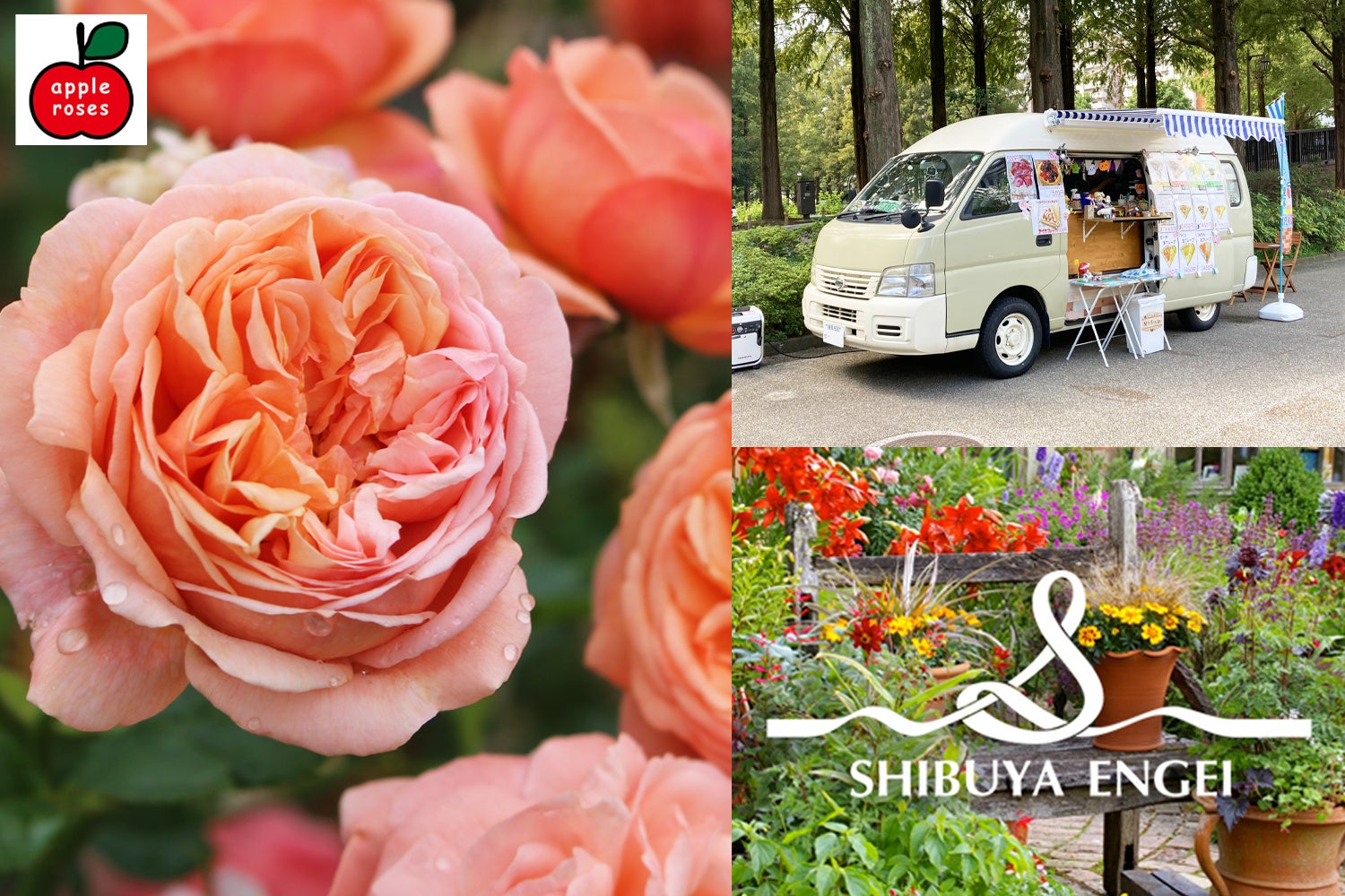 シンボルローズ“四季の香”作出者(AppleRoses)忽滑谷史記さんのバラ苗販売や渋谷園芸の花苗販売のほか、手作りの雑貨販売など日替わりで色々なお店が登場する楽しいマルシェを開催します。
