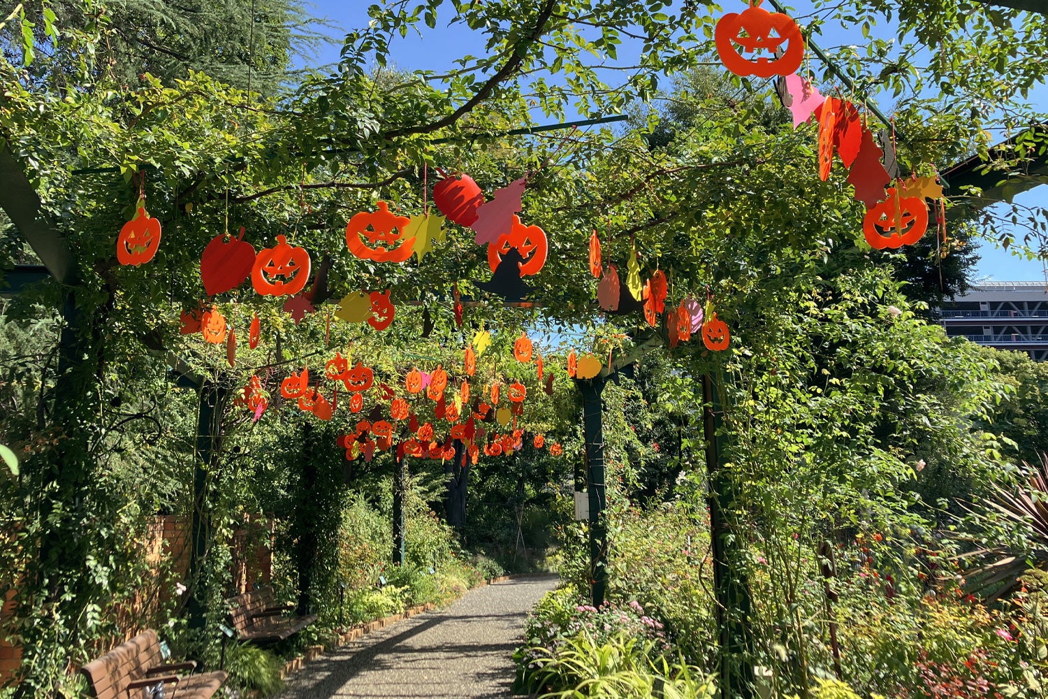 さらに香りのローズガーデンのパーゴラには、今年初となるハロウィントンネルが登場。ハロウィンにちなんだカボチャなどをパーゴラの天井に吊るしハロウィン気分を盛り上げます。
