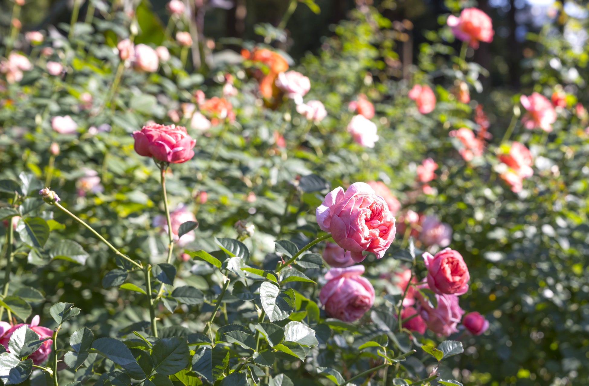 園内が秋のバラで華やかに彩られ、深い色合いと豊かな香りが11月中旬ごろまで楽しめる
