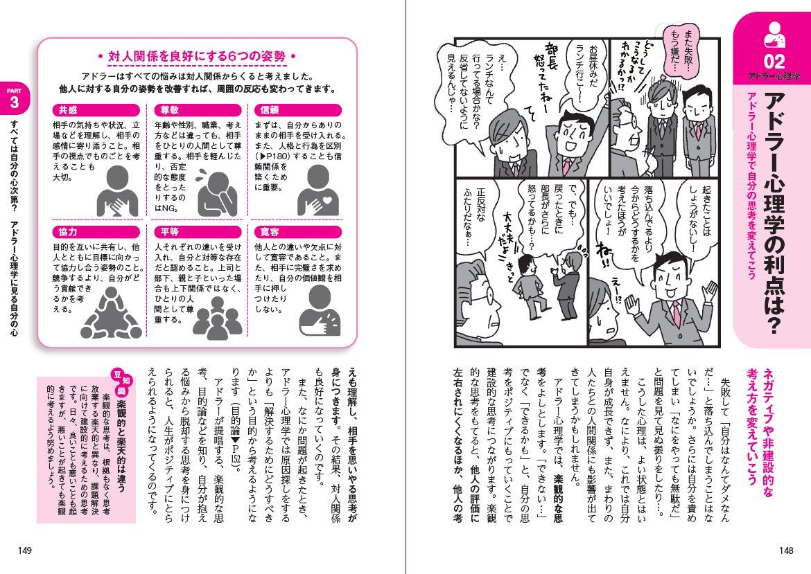 従来の心理学的な解説だけでなく、認知行動療法やアドラー心理学など、さまざまな心理学的観点から自分の心を救うヒントを教えていきます。